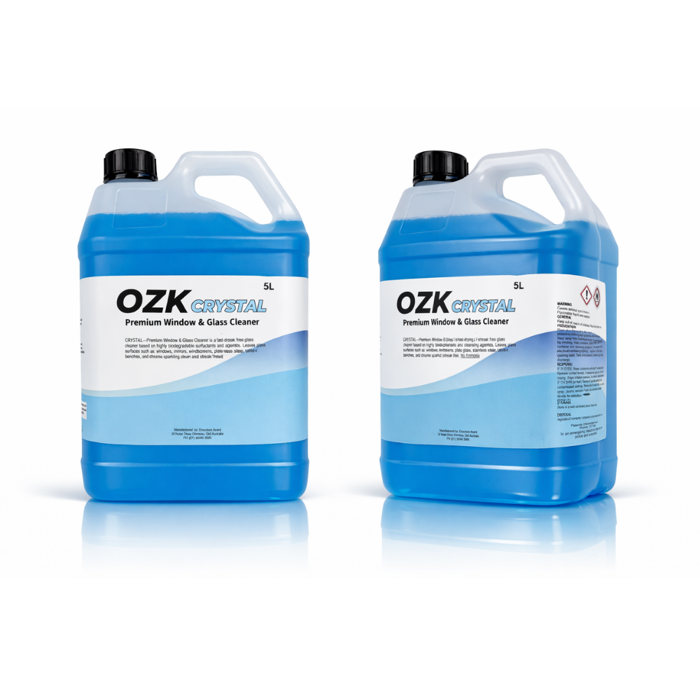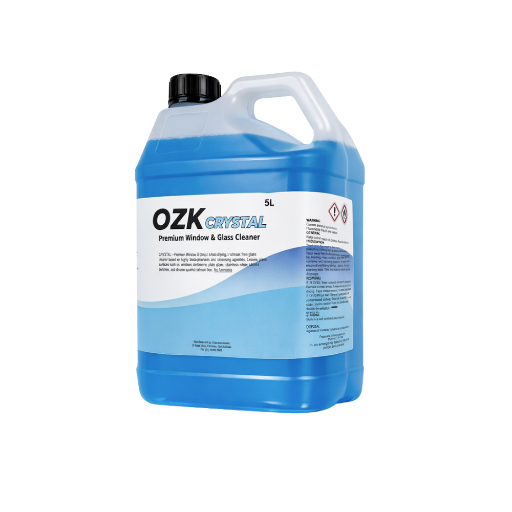 OZK Crystal is a premium glass and surface cleaner formulated with highly biodegradable surfactants and advanced cleaning agents. It delivers a streak-free, crystal-clear finish on glass and reflective surfaces.