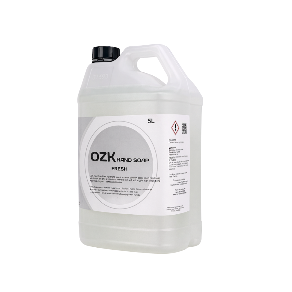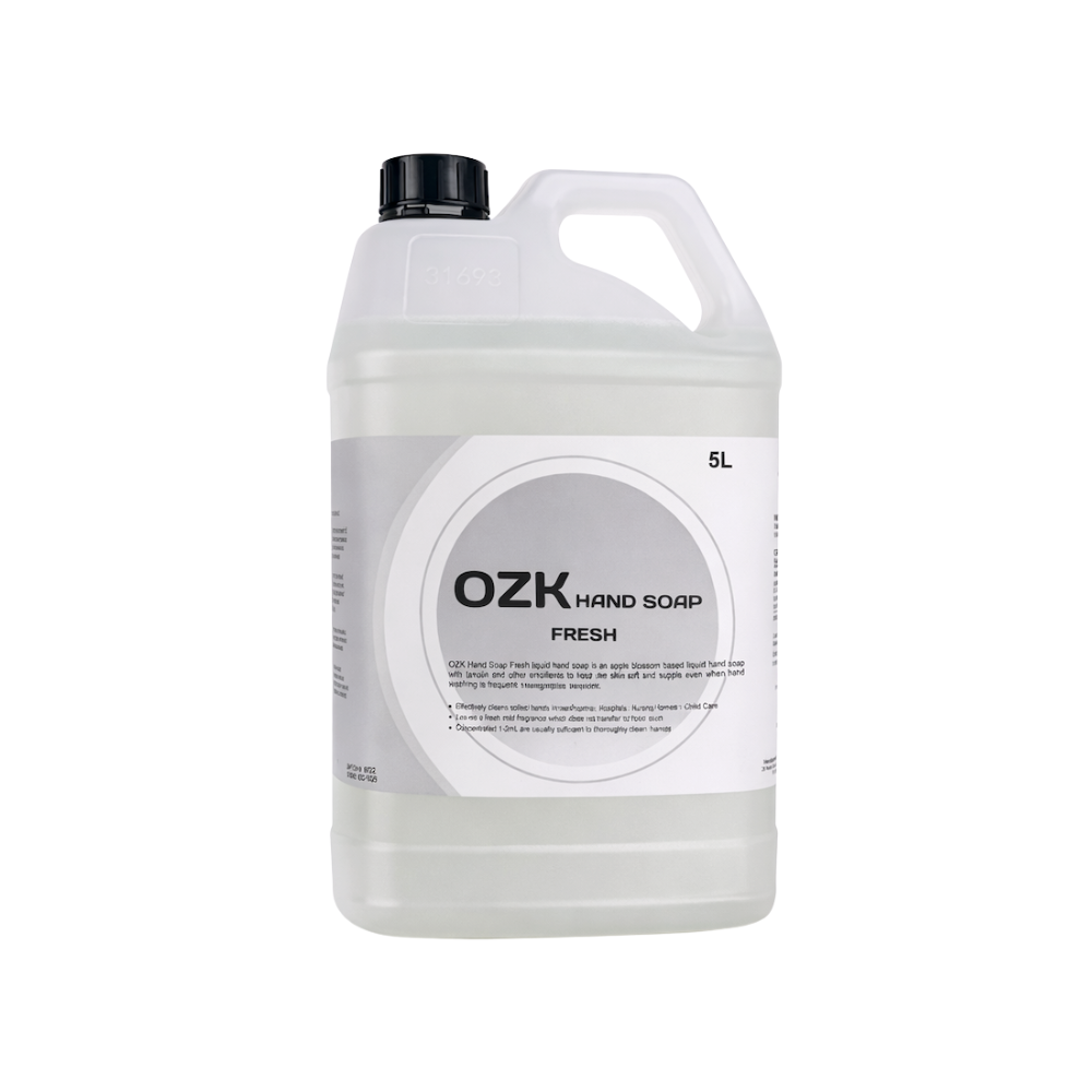 OZK Hand Soap Fresh is a biodegradable, coconut-based liquid hand soap formulated with lanolin and other emollients to keep skin soft and supple, even with frequent hand washing.
